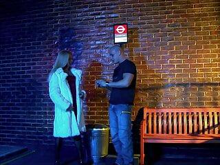 Hübsche Blondine in schwarzen Strümpfen hart gefickt